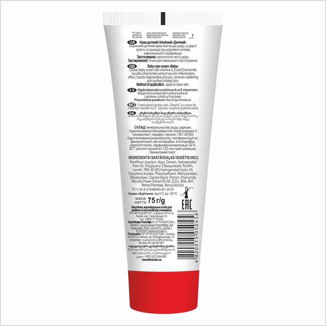 Гигиенический крем «Детский» — классическое средство для ежедневного ухода за нежной кожей ребёнка. Формула с витаминами A и E и экстрактом ромашки смягчает кожу, помогает сохранить её естественную влагу и защищает от негативного воздействия внешней среды. Крем легко наносится, быстро впитывается и подходит для ежедневного использования.