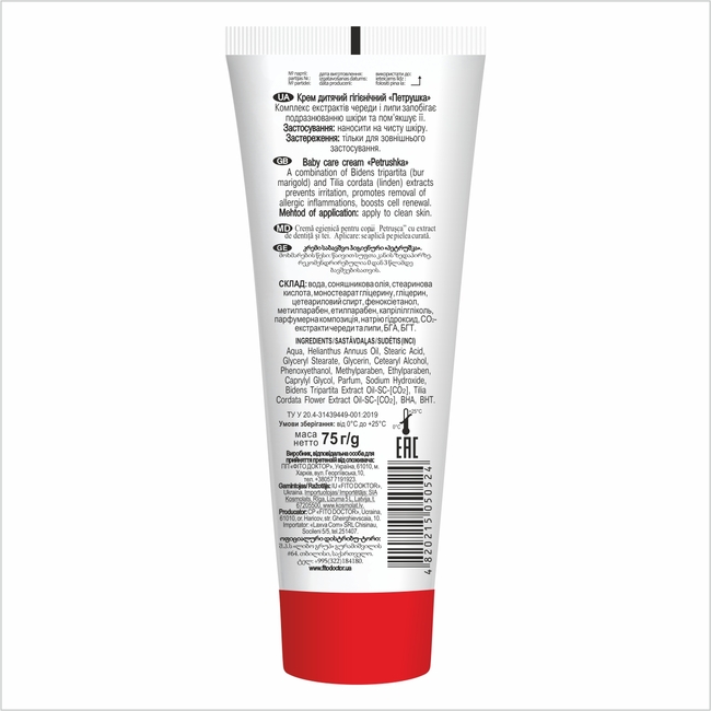 Детский крем «Петрушка» бережно ухаживает за нежной кожей ребёнка, помогает сохранить её мягкой и комфортной. Специальная комбинация экстрактов череды и липы успокаивает кожу, предотвращает раздражение и смягчает её.