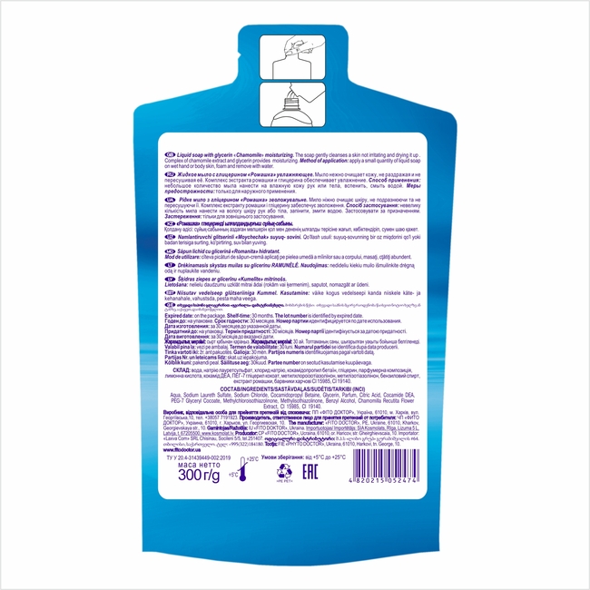 Дой-Пак мыло Fitodoctor «Ромашка», увлажняющее, 300 мл.