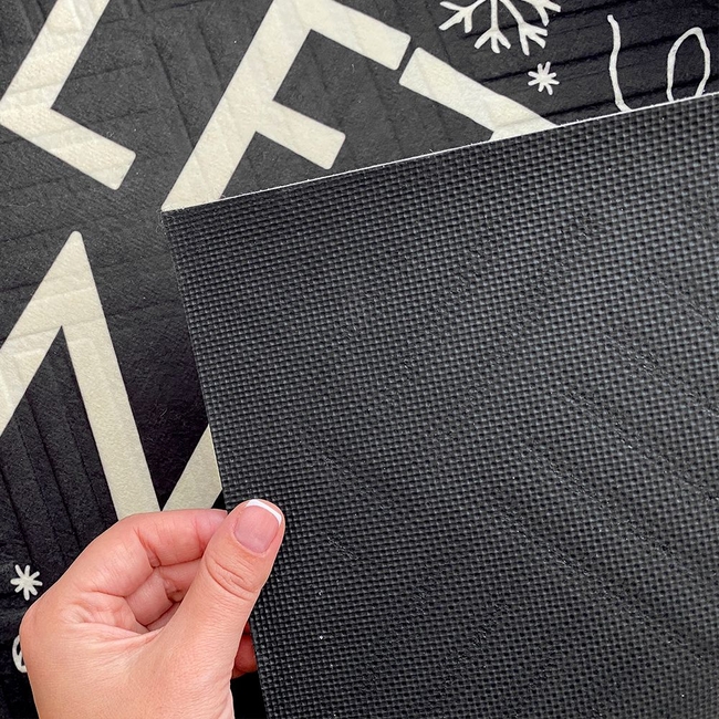 Килимок в прихожу можна чистити з використанням щітки з довгою щіткою або пилососом. Від запаху килимка з гуми легко позбутися за допомогою прання в холодній воді, давши просохнути на вулиці.