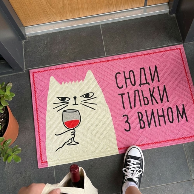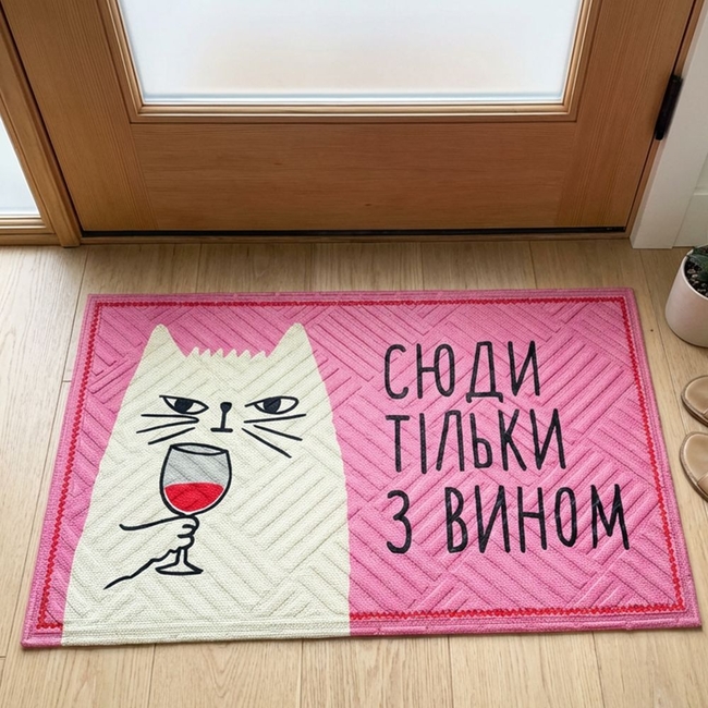 Коврик придверный с принтом Сюда только с вином
