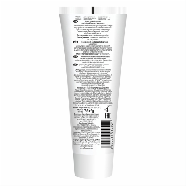 Крем для обличчя та тіла Fitodoctor «Жасмин», зволожуючий для сухої та чутливої шкіри, 75 г