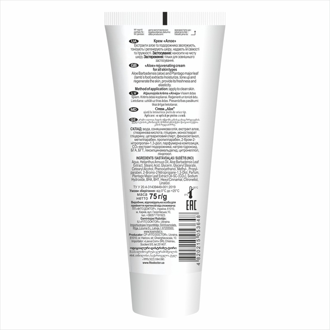 Крем обеспечивает увлажнение, тонизирование и восстановление кожи благодаря экстрактам алоэ и подорожника. Он придаёт коже свежесть, упругость и ухоженный вид при ежедневном использовании.