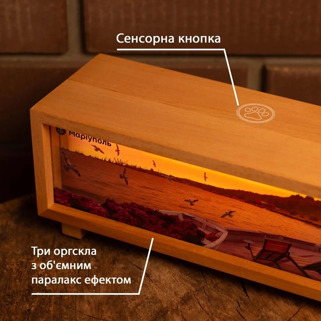 - Трёхмерная глубина: три слоя акрила с детализированным изображением создают эффект параллакса;