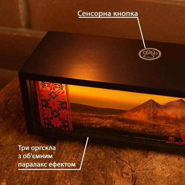 - Трёхмерная глубина: три слоя акрила с детализированным изображением создают эффект параллакса;