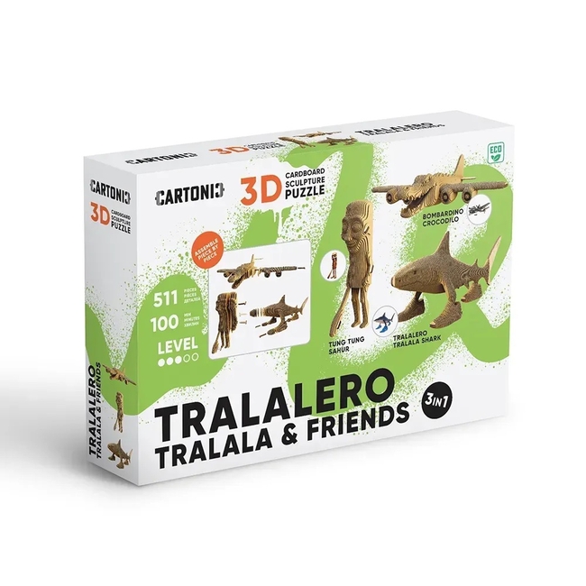 Розмір готового об'єкта: 120 x 120 x 290 мм tralalero tralala shark; 70 x 320 x 230 мм bambardino crocodilo; 180 x 70 x 50 мм tung tung sahur