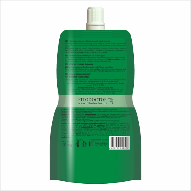 Дой-Пак шампунь-бальзам Fitodoctor «Лопух», зміцнюючий для всіх типів волосся, 270 г
