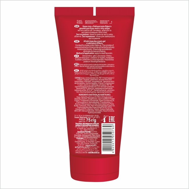 Крем-гель «Лабораторія-Ефект» денний для будь-якого типу шкіри — це легкий зволожуючий догляд, який ідеально підходить як основа під макіяж. Він допомагає підтримувати оптимальний рівень зволоження, робить шкіру гладкою та доглянутою. Формула забезпечує комфорт протягом усього дня.