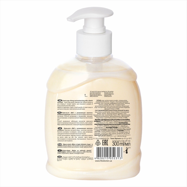 Крем-мило Fitodoctor «Мед і зволожуюче молочко», вітамінізуюче, 300 мл