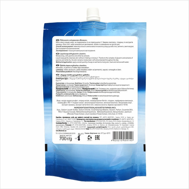 Дой-Пак крем-мило з гліцерином Fitodoctor «Жасмин», зволожувальне, 700 мл