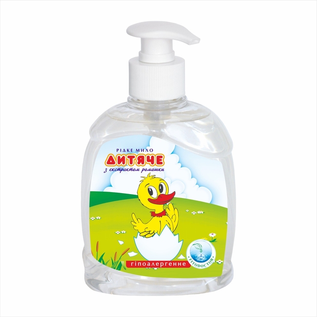 Рідке мило «Дитяче» ніжно очищає шкіру малюка, не пересушуючи і не подразнюючи її. Натуральний екстракт ромашки має протизапальну та пом’якшувальну дію, допомагає зберегти природну м’якість і еластичність шкіри. Мило підходить для щоденного догляду за ніжною дитячою шкірою.